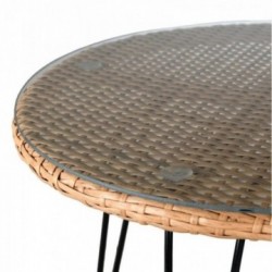 Ensemble salon de jardin 3 pièces en rotin et cannage, 2 fauteuils avec coussin + 1 table ronde.
