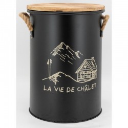 Musta metallipelletti ämpäri, jossa on 1 laatikkopuu