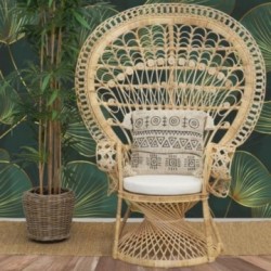 Emmanuelle nojatuoli ruskea sävytetty rottinki, jossa on tyynyt.