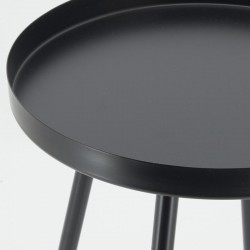 Suorakulmainen sohvapöydän teak-palapeli mustalla lakattuun metalliin.