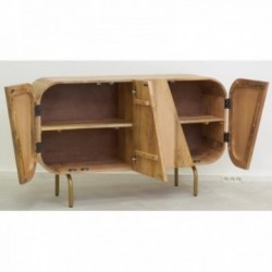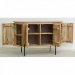 Realizzato in legno massiccio di mango, questo buffet combina robustezza e durata. Il legno, riconosciuto per la sua forza e sfumature naturali, dona a ciascun mobile un personaggio unico. Le due porte decorate offrono un contrasto armonioso tra la materia grossa e il tessile delicato, portando una dimensione artistica e contemporanea alla decorazione interna.