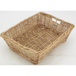 Biały koszyk prezentacji wikliny.